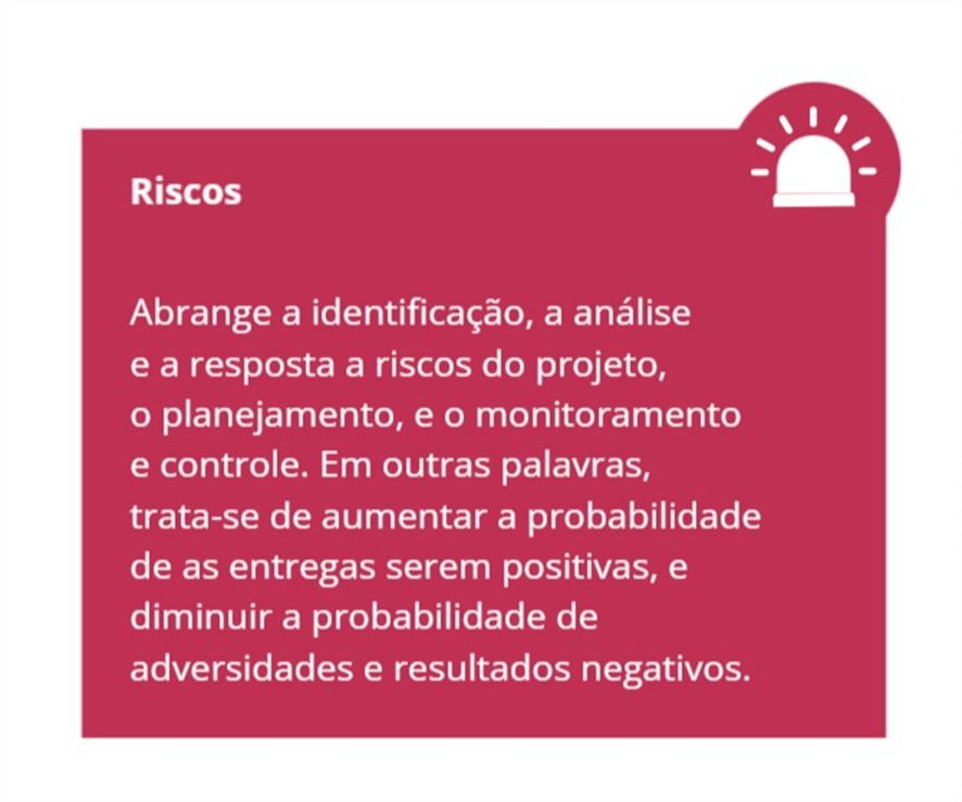 A gestão de projetos requer o gerenciamento de noves áreas do conhecimento. São elas: